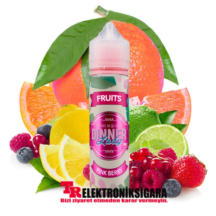 Dinner Lady Fruits tarafından Pink Berry E-Likit, nefes üzerinde olgunlaşmış ve tatlı Pembe meyvelerin bir karışımıdır, nefes verilmiş narenciye kokusu ile tamamlanır.