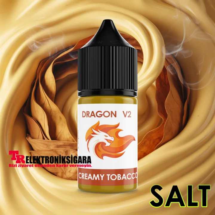 Dragon Salt Likit V2 Creamy Tobacco 30ml, klasik tütün lezzetini kremsi tatlılıkla birleştirerek sofistike bir deneyim sunar!