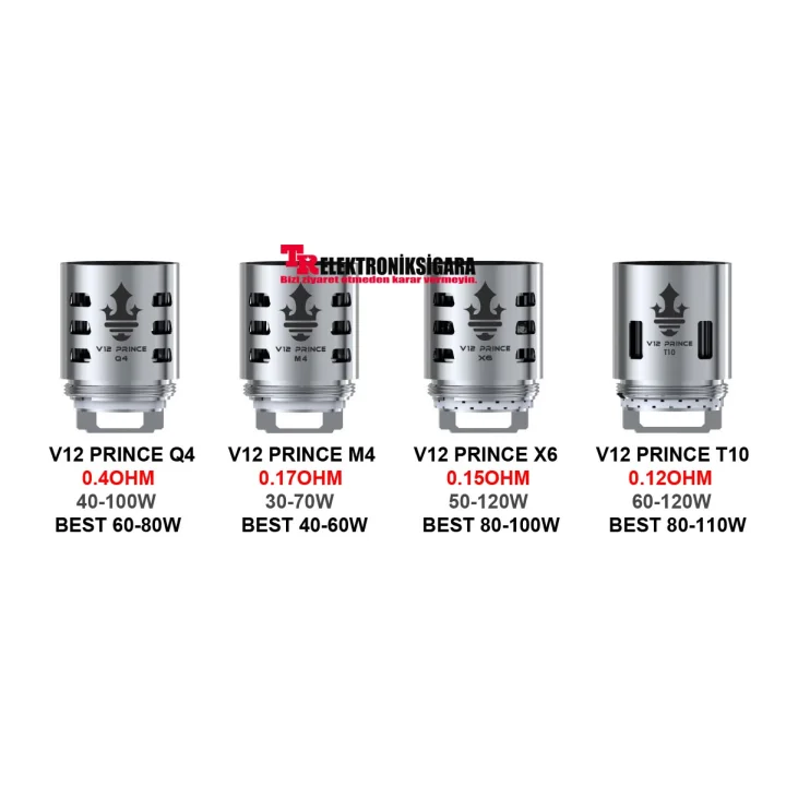 SMOK tarafından 'Hiper Motorlar' olarak markalanan TFV12 Prince Atomizer Coilleri, 40 ila 120 Watt arasında değişen güç ayarlarında birinci sınıf bulut ve lezzet sağlamak için gelişmiş fitilleme kabiliyetini kullanır. Bu çok çekirdekli Prince atomizerler coilleri, devasa Paslanmaz Çelik yapısında 12 ayrı fitilleme portuna sahiptir. Tek istisna, V12 Prince-T10 bobinidir. Bu sınıfının en yüksek buhar veren coili, e likitin 10 ayrı çekirdeğe akışını düzenlemek için 4 uzatılmış fitilleme portu kullanır.